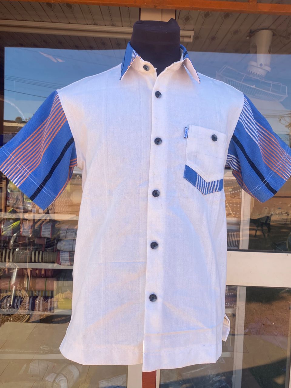 Ajoutez une touche de modernité à votre style avec cette chemise à manches courtes réalisée en Faso Danfani, un tissu emblématique du Burkina Faso, alliant artisanat et élégance.