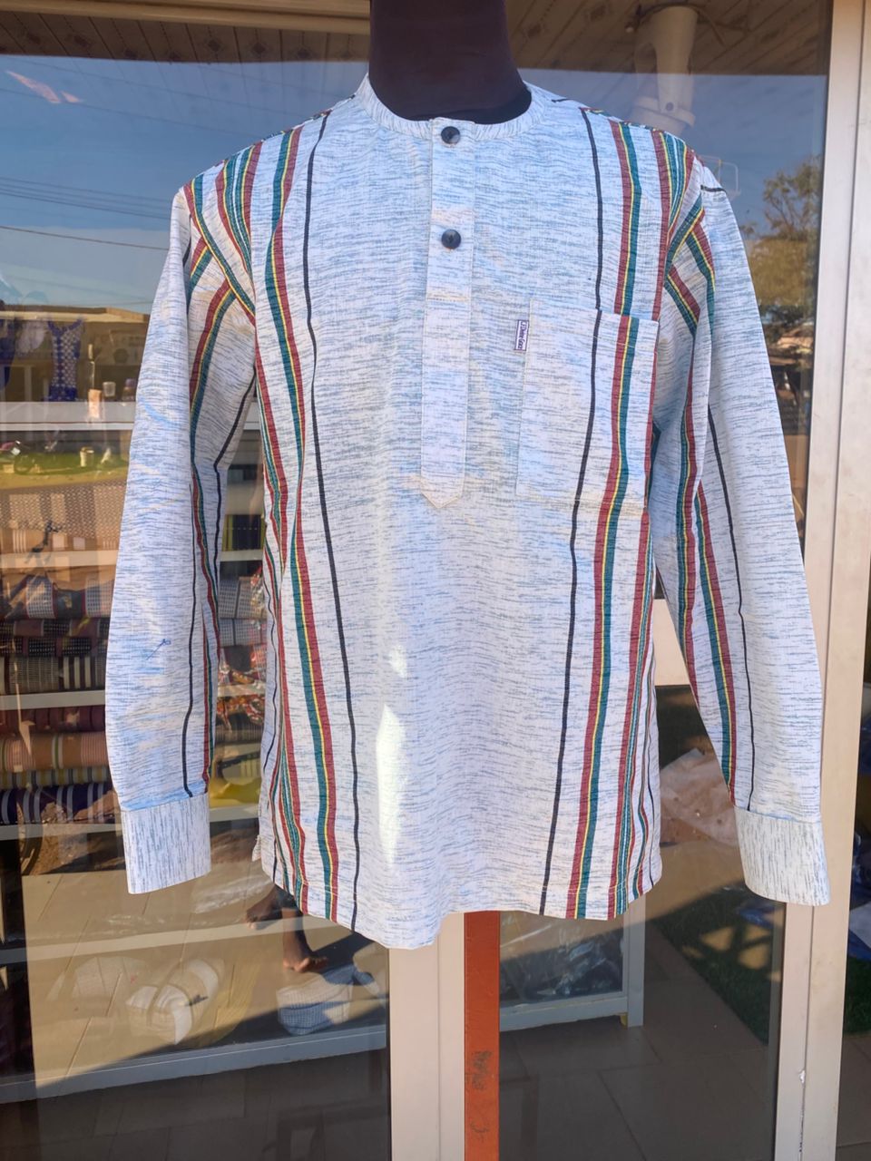 Adoptez un style unique et raffiné avec cette chemise à manches longues réalisée en Faso Danfani, un tissu tissé main, symbole du savoir-faire burkinabè.